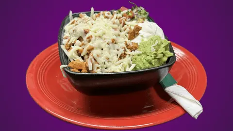 Chicken served with rice, beans, lettuce, pico de gallo and corn or flour tortilla.