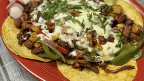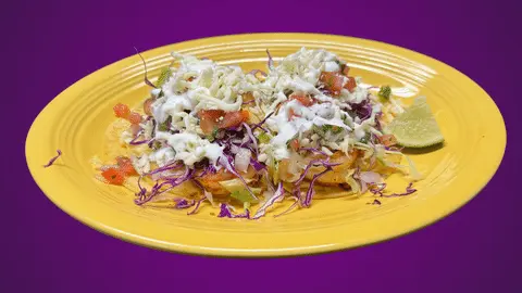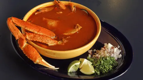 Prepared With shrimp, mussels and seafood mix, Bell Peppers, Onions. Served With Rice, Beans, Lettuce, Pico De Gallo, Sour Cream, Guacamole and corn or flour tortilla.